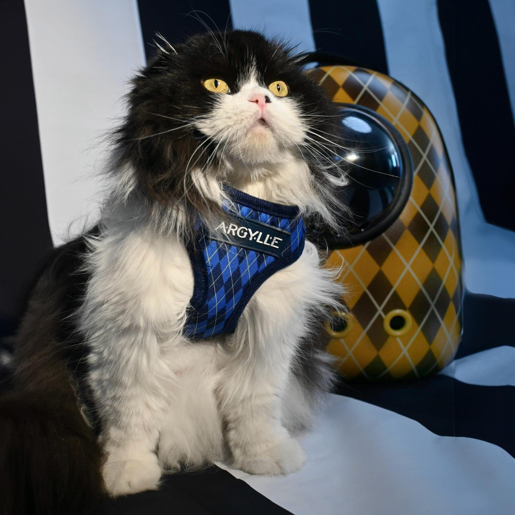 When adventure calls your cat by day, spy by night will be ready to answer with this "Argylle x Travel Cat" Harness & Leash Set, inspired by the dynamic world of "Argylle" the movie. Available in both signature colorways, yellow and blue argyle print.